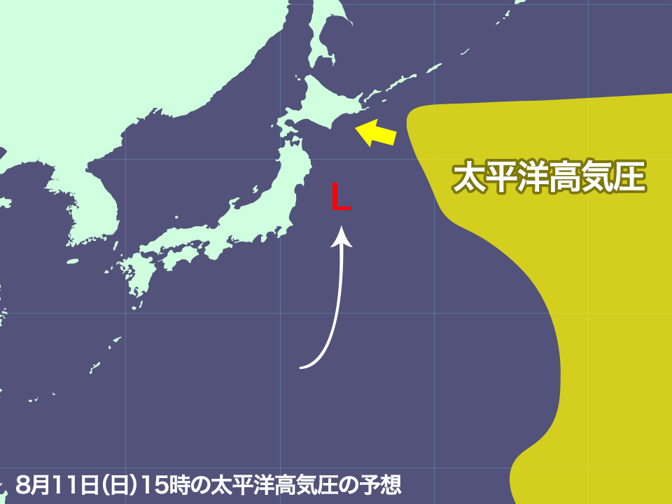 台風5号の進路に大きく寄与するとみられるのは、日本のはるか東に中心をもつ太平洋高気圧です。