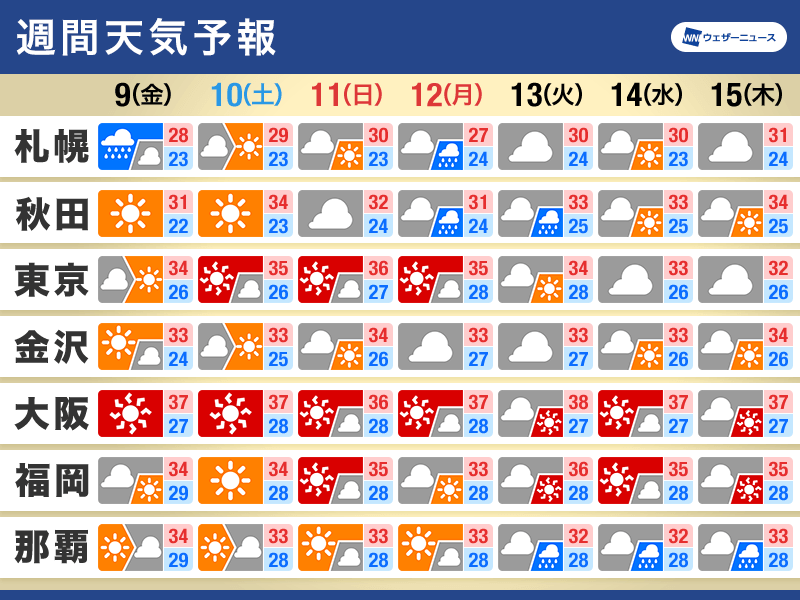 台風が予報円の中心を通った場合は北日本を中心に雨風が強まるおそれがあり、予想よりも西寄りの進路をとった場合には東日本や西日本でも影響が出る可能性があります。また、台風が陸から離れて北上したとしても、太平洋沿岸では波が高くなるため、三連休を中心に海のレジャーの際は離岸流などに十分注意が必要です。