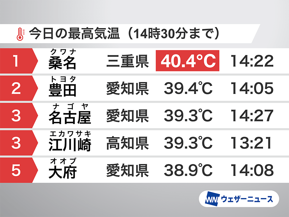 【速報】三重県桑名市で40℃を記録 三重県では初めての40℃観測
