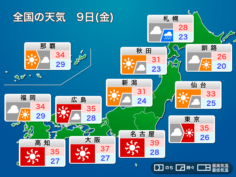 明日8月9日(金)の天気予報…