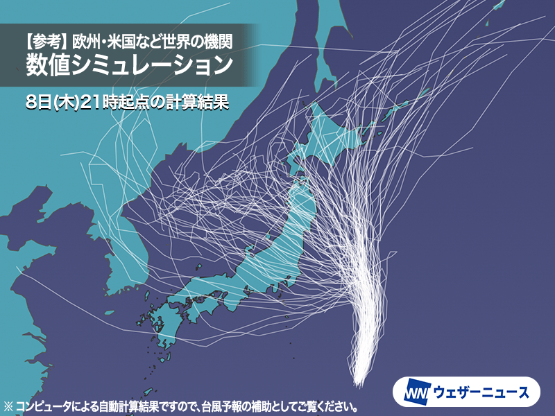 これらのメンバーを比較すると、日本の東に北上する傾向は概ね揃っているものの、その先は進路のシミュレーションの結果にかなりばらつきがあるのがわかります。北海道の東を通る予測もあれば、関東や西日本方面に向かう予測まであり、影響も大きく変わってきます。