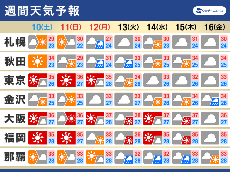 台風が予報円の中心を通った場合は北海道や東北を中心に雨風が強まるおそれがあり、予想よりも西寄りの進路をとった場合には東日本や西日本でも影響が出る可能性があります。また、台風が陸から離れて北上したとしても、太平洋沿岸では波が高くなるため、三連休を中心に海のレジャーの際は離岸流などに十分注意が必要です。