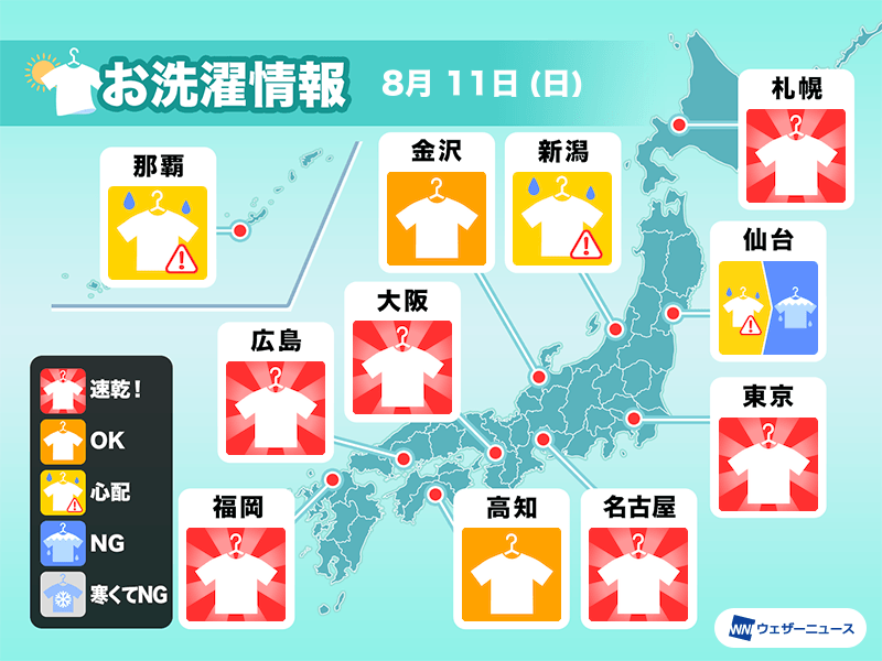8月11日(日)の洗濯天気予報