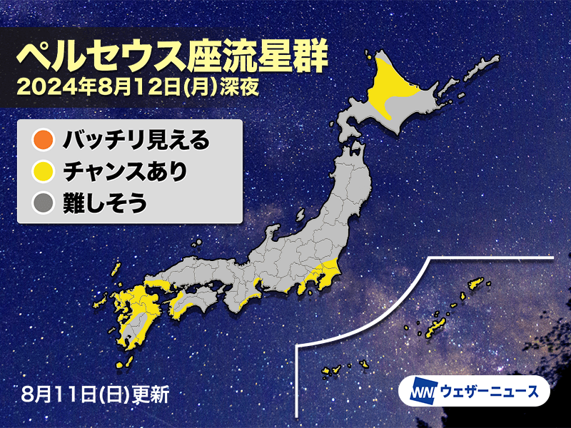 台風5号の影響で、流星群の観測ができる地域は限られる見込みです。