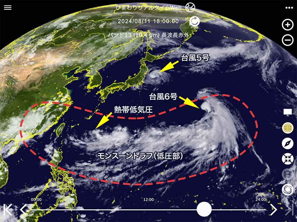 日本の南海上はモンスーントラフという広大な低圧部となっていて、熱帯低気圧や台風が次々に発生しやすくなっているため、引き続き注視が必要です。