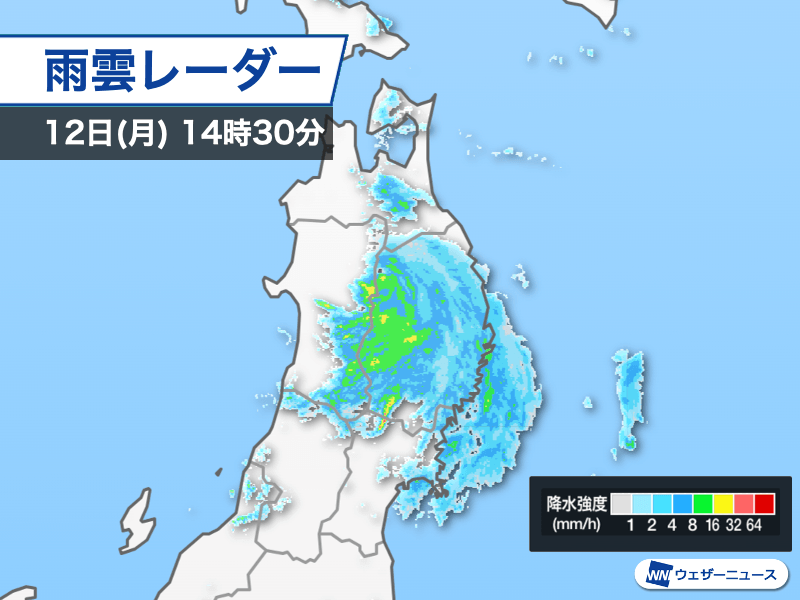 この後は雨の強い範囲が徐々に北西に移り、秋田市などでも雨が強まる見込みです。多い所では1時間に30mmを超える激しい雨になるおそれがあるため、道路冠水や河川の急な増水に注意してください。
