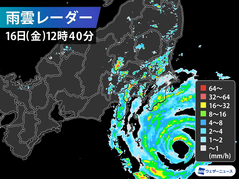 このアウターバンドの雨雲が関東にもかかり、神奈川県平塚では12時20分までの1時間に27.5mmの強い雨を観測しました。