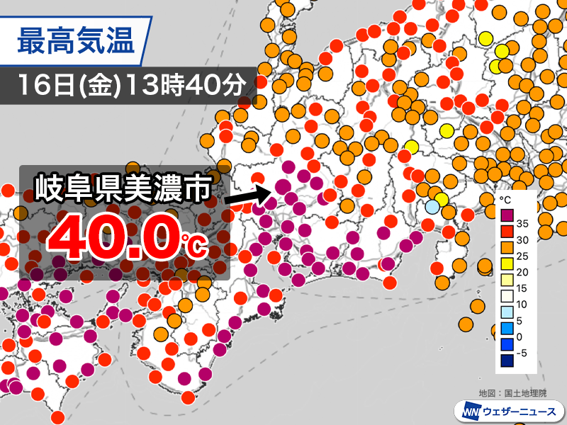 【速報】 岐阜県美濃市で40℃を記録 今年に入り全国で9地点目