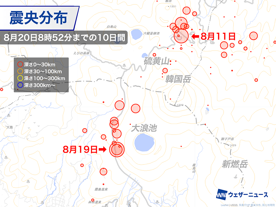 今月11日(日)にも韓国岳付近の浅い所を震源とする、震度1の地震を観測したばかりです。