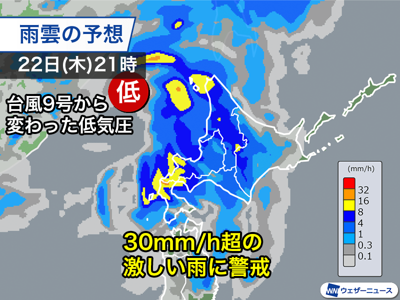 北海道や東北北部の日本海側は早い所で昼頃から雨が降り出し、次第に本降りの所が増えてくる予想です。夜以降は活発な雨雲が次々に通過して、局地的には1時間に30mm以上の激しい雨の降るおそれがあります。