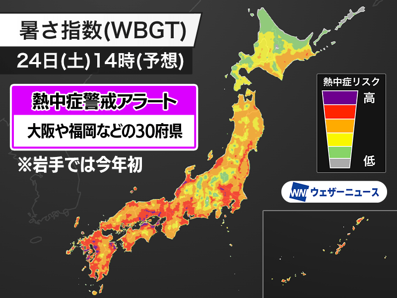 明日8月24日(土)対象の熱中症警戒アラート 30府県に発表 岩手県は今年初
