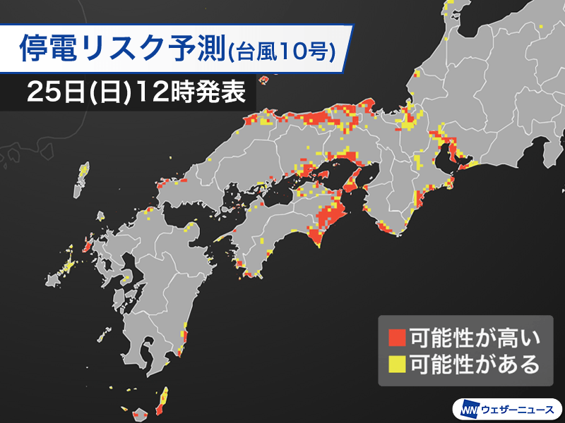 上陸する時点でも強い勢力を維持する見通しです。台風の中心に近いエリアでは瞬間的に40〜50m/sの暴風が吹き荒れるおそれがあります。暴風によって広範囲で停電が発生した場合は、復旧までに時間を要することが考えられますので、備蓄などの対策を早めに済ませておくようにしてください。