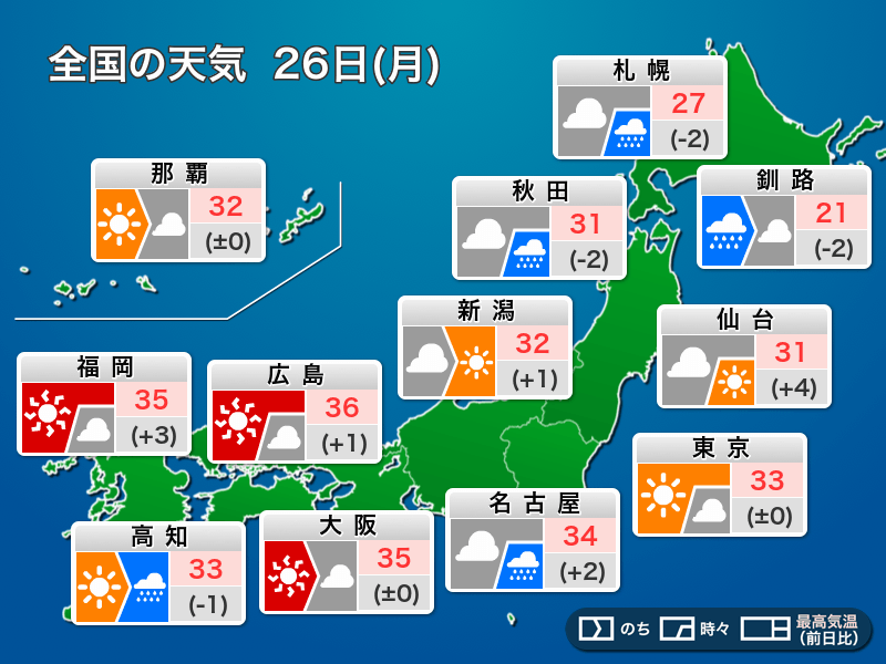 今日8月26日(月)の天気予報