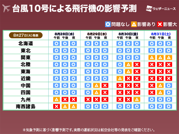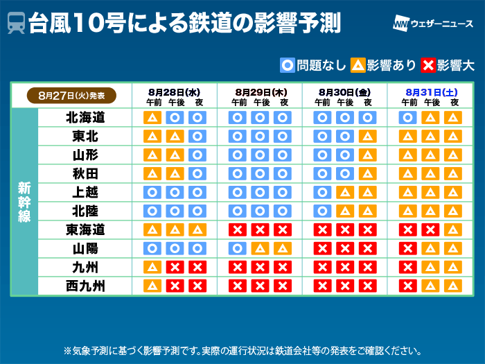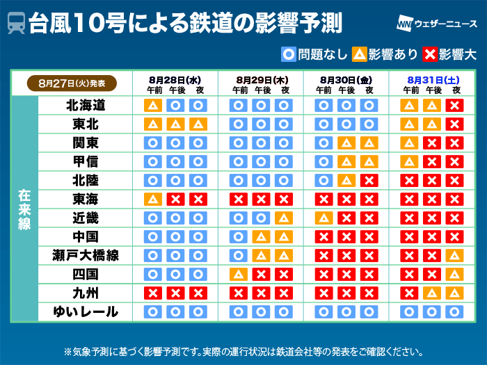 台風10号 交通影響予測 広範囲で運休や通行止め 移動や物流に影響大(27日12時更新)