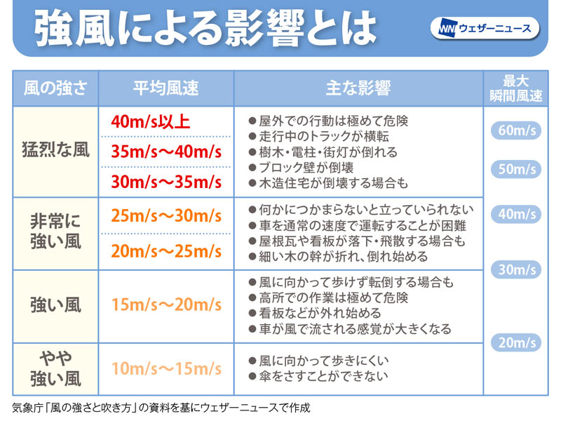 「風速50m/s」はどのくらい危険? 風の強さの目安