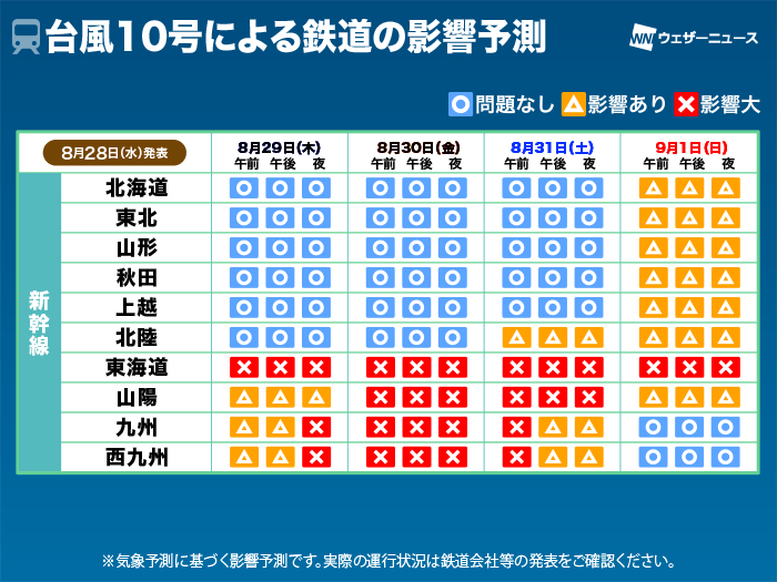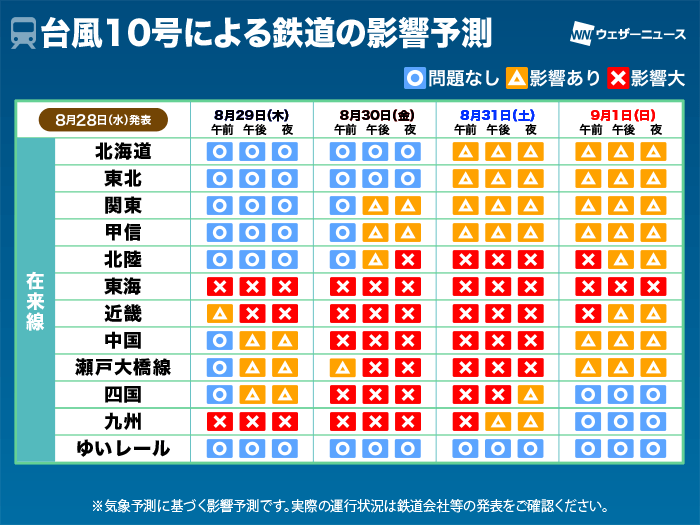 台風10号 交通影響予測 広範囲で運休や通行止め 影響が長引くおそれ(28日12時更新)