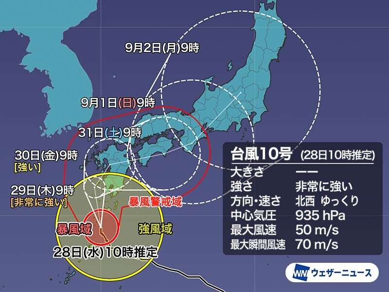 ▼台風10号 8月28日(水) 10時推定