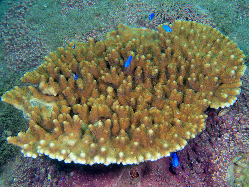 30年前に温帯性サンゴが見つかっていましたが、この5年ぐらいはエンタクミドリイシのような南方系サンゴが増えています。今では23種類ものサンゴが観察されるようになりました」(魚地さん)