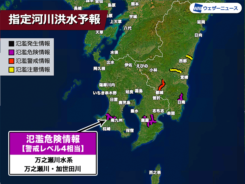 雨が弱まったあとも川の水位はさらに上昇するおそれがあるため、状況が気になっても川の様子を見に行かないでください。川の様子はウェザーニュースアプリのレーダータブ「河川」モードからライブカメラで確認出来ます。