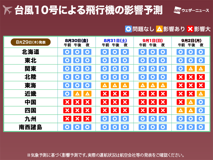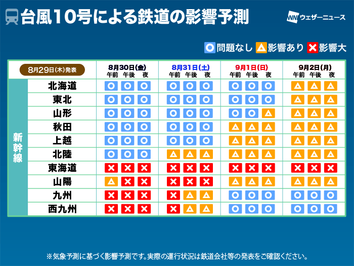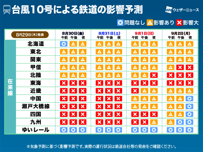 台風10号 交通影響予測 広範囲で運休や通行止め 西日本や東海で影響長引く(29日11時更新)