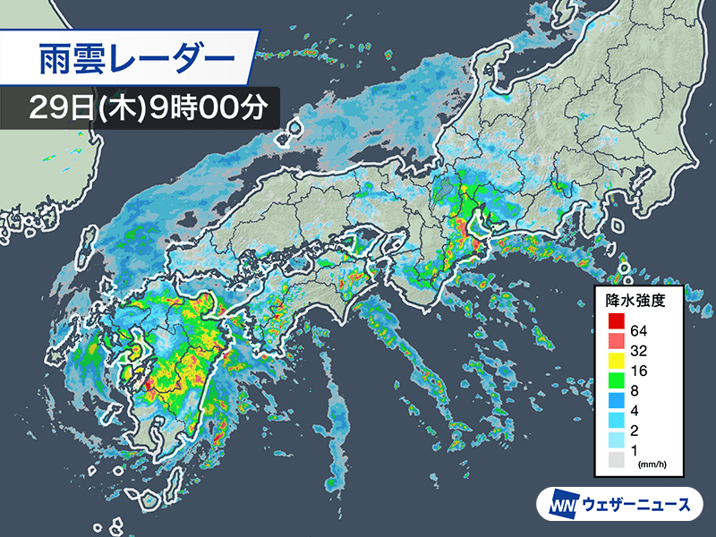 台風は陸上を移動する影響で次第に勢力を落とし、明日30日(金)のうちには暴風域がなくなる見通しです。暴風の影響は小さくなる一方、雨の影響は週末以降も継続します。