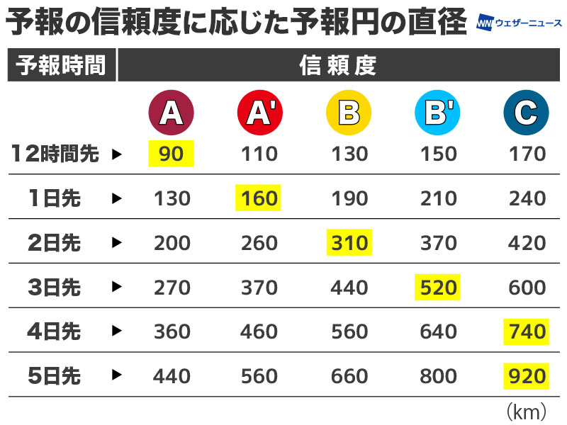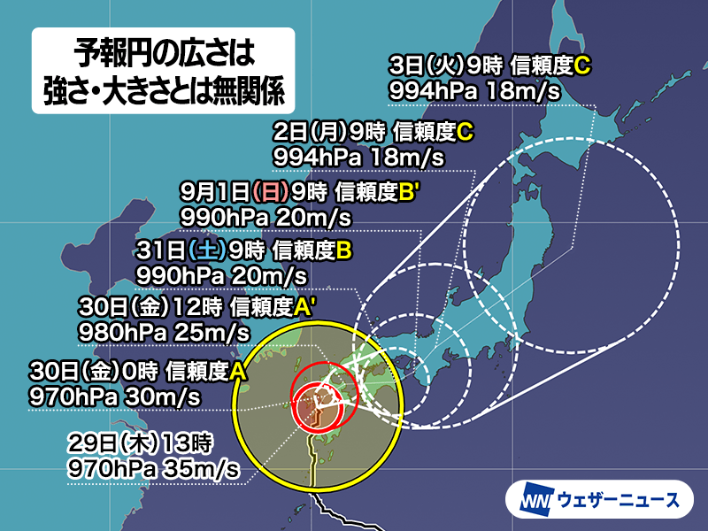 台風進路図の予報円の広さは「強さ」「大きさ」とは無関係