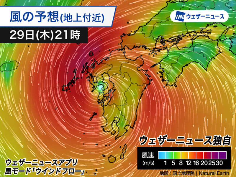 西日本の沿岸部では瞬間30m/s前後の風が吹くおそれもあり、引き続き停電に注意が必要です。