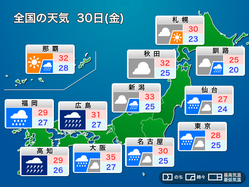 明日8月30日(金)の天気予報…