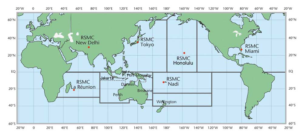 このため、西経域から進んできたハリケーンや発達した熱帯低気圧(トロピカルストーム)が東経域に入ると、監視担当機関がアメリカの中部太平洋ハリケーンセンター(CPHC)から日本の気象庁に引き継がれ、「台風」と呼ばれることになります。