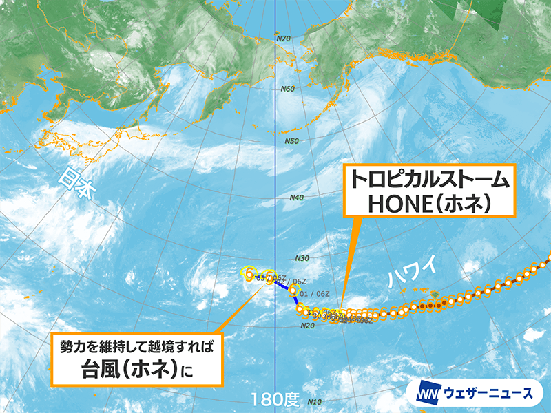 トロピカルストーム「HONE(ホネ)」が越境台風になる可能性