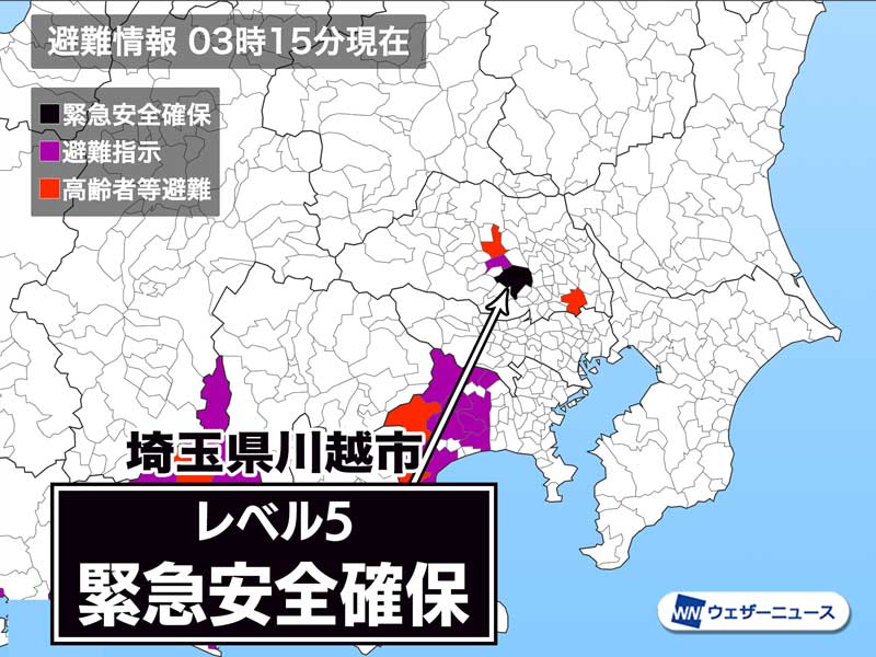埼玉県川越市に「緊急安全確保」発令 警戒レベル5 命を守る行動を