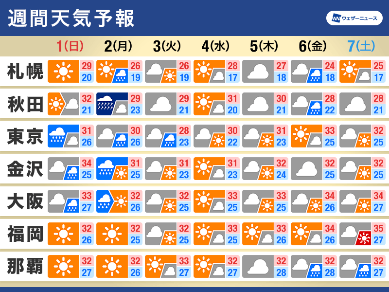 日差しが届く地域では、再び気温が35℃前後まで上がる日が多くなる見込みです。今年の暑さは例年より厳しく、さらにその期間が長引いているところもあるため、体への負担も大きくなっています。暑さによる疲労が蓄積しやすく、体調を崩しやすくなっているので、体調管理をしっかりと行ってください。