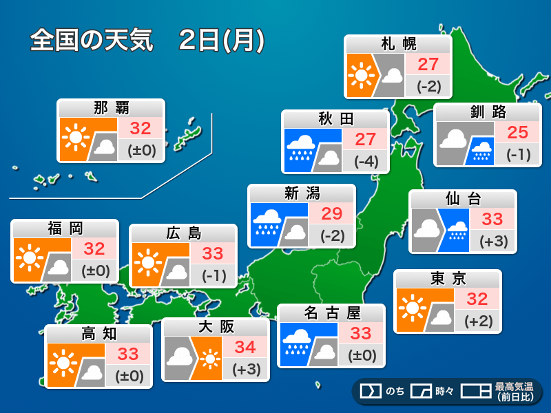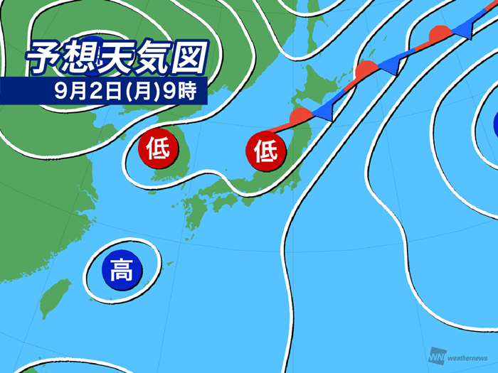 今日9月2日(月)の天気予報…