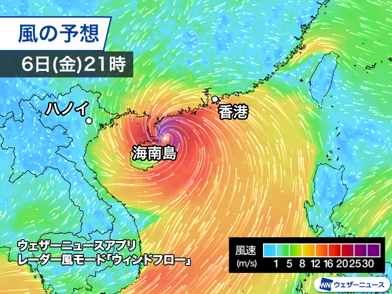 海南島は非常に強い勢力で直撃が予想され、暴風雨による被害が懸念されます。香港など南シナ海に近い地域でも風雨の強まるタイミングがある見込みです。また、ベトナム北部も風雨の影響が大きくなるとみられます。