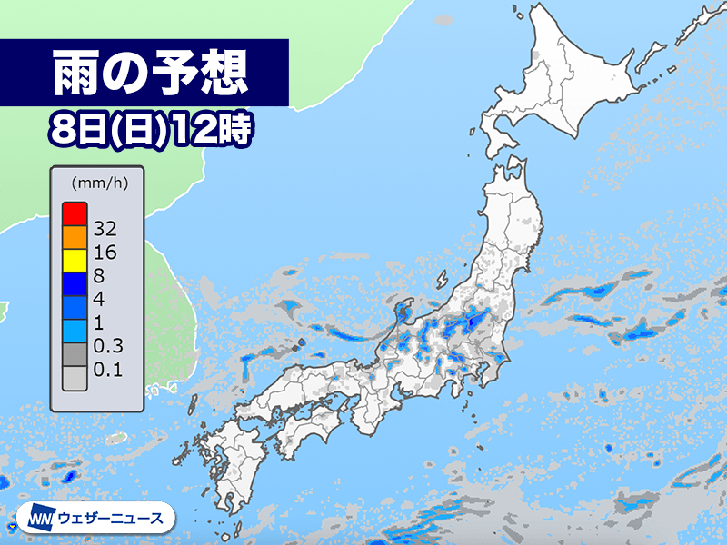 明後日8日(日)は前線が東日本をゆっくり南下します。関東甲信地方には南から暖かな空気が流れ込み、大気の状態が不安定となります。