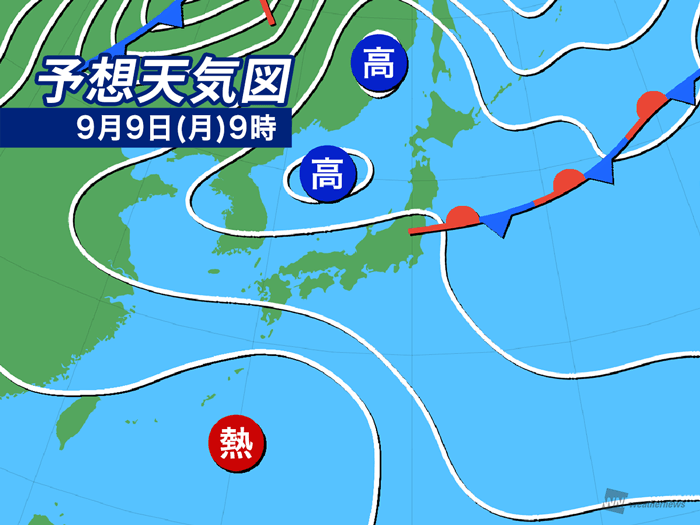 今日9月9日(月)の天気予報