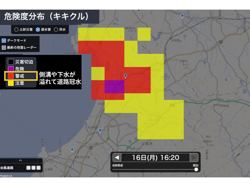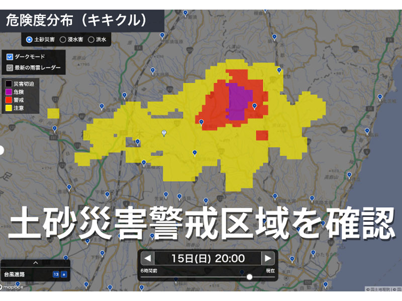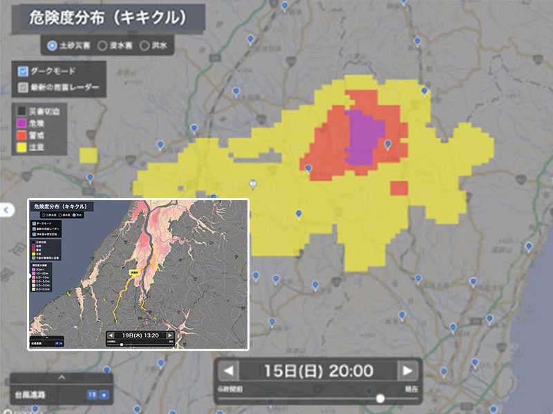 ※キキクルは、まさに危険が迫っていることを示しています。赤や紫の判定がされる前に、雨雲レーダーなどの情報を確認して、事前の防災対策をお願いします。