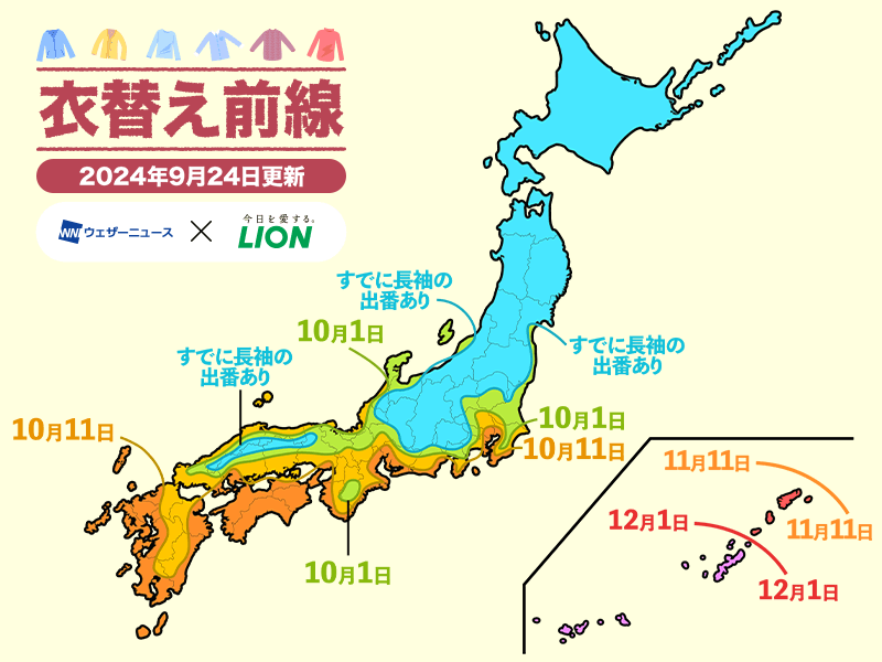 今年2024年も残暑が記録的となっており、西日本は昨年以上に衣替えの時期が遅くなりそうです。