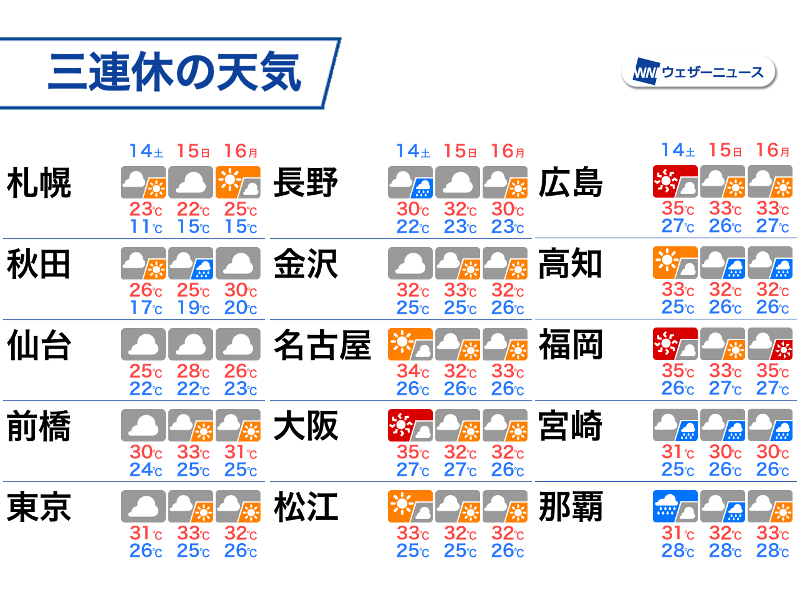 三連休も関東以西は残暑と天気急変に注意