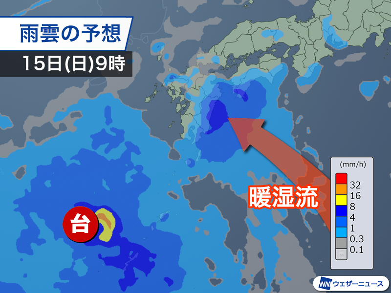 14日(土)〜15日(日)にかけて強雨が続きますので注意が必要です。