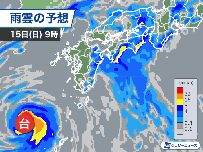 台風は明日にかけて奄美地方を通過し、東シナ海に進むとみられます。中心は日本から段々と離れていきますが、西日本太平洋側への湿った空気の流れ込みは続き、特に明日は高知県など、今日より少し東の地域で雨が強まりやすくなる予想です。