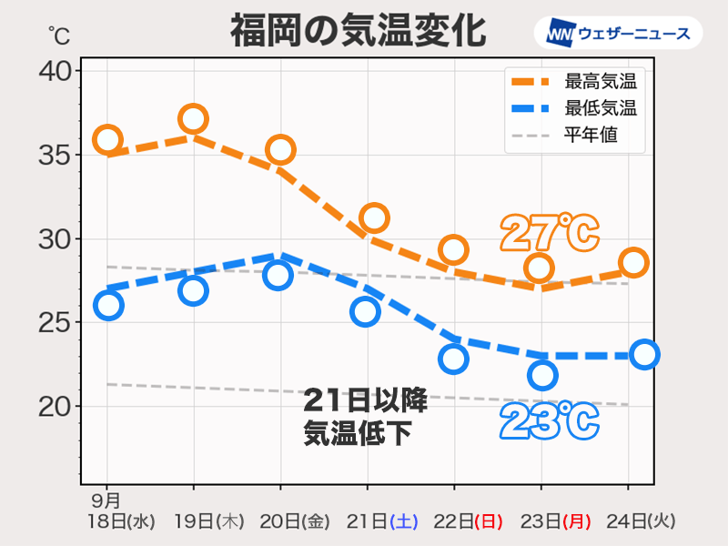 前線と共に上空の寒気も南下して、西日本を中心に続いていた記録的な猛暑にもようやく終止符が打たれる見込みです。ただ、いきなり体感が一変して秋の涼しさが訪れるわけではなく、日によっては30℃以上の真夏日になる日もあります。