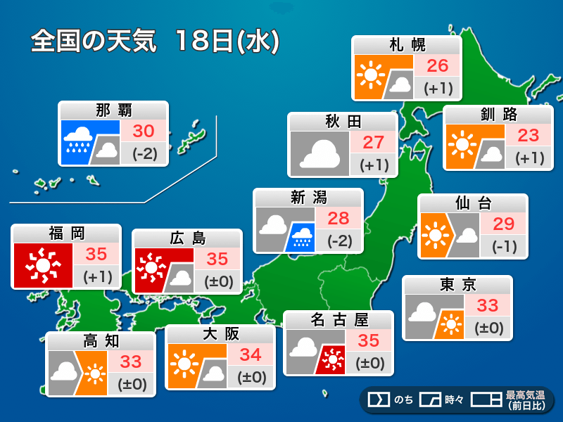 今日9月18日(水)の天気予報…