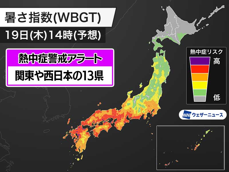 環境省と気象庁は、暑さ指数が「危険」ランクの中でもさらに重要度の高い暑さ(WBGT:33以上)が予想される場合に「熱中症警戒アラート」を発表することを決めています。