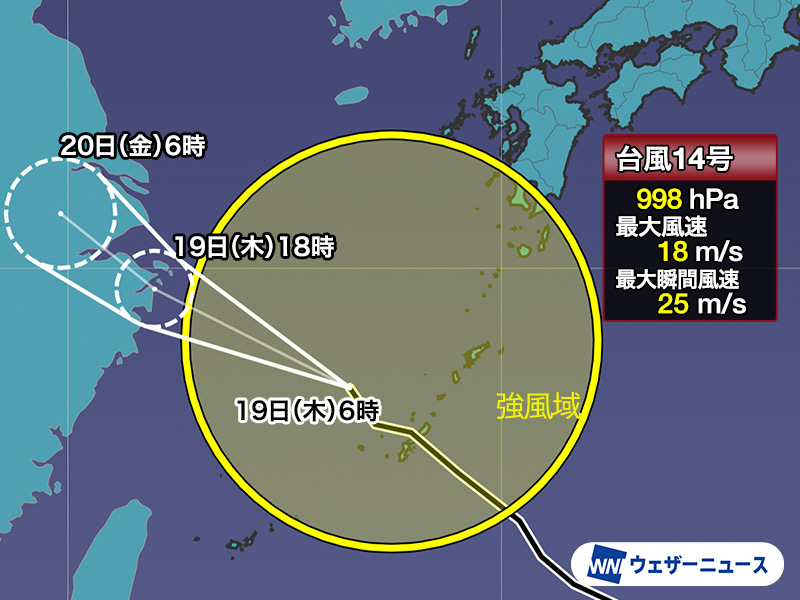 ▼台風14号 9月19日(木)6時