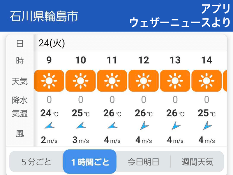 記録的な大雨となった能登半島では、今日24日(火)は穏やかな天気で晴れる時間が多くなります。