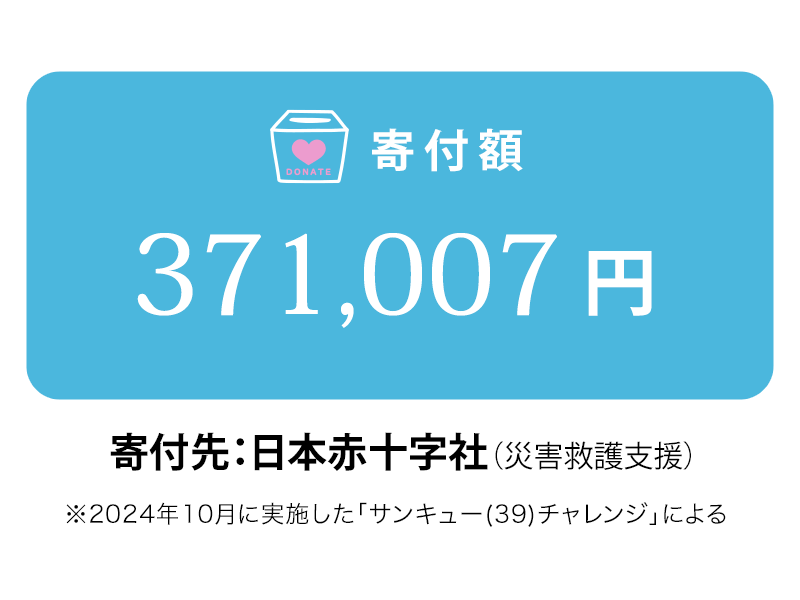 今年は総ポイントに応じて、2種類のチャリティ企画を実施。1000pt以上のベテランさんが参加した「7日間限定チャレンジ」の他に、1000pt未満の方向けには毎月39ポイントを集める「サンキュー(39)チャレンジ」を実施しました。こちらは2024年10月31日に終了しました。たくさんのご参加ありがとうございました。