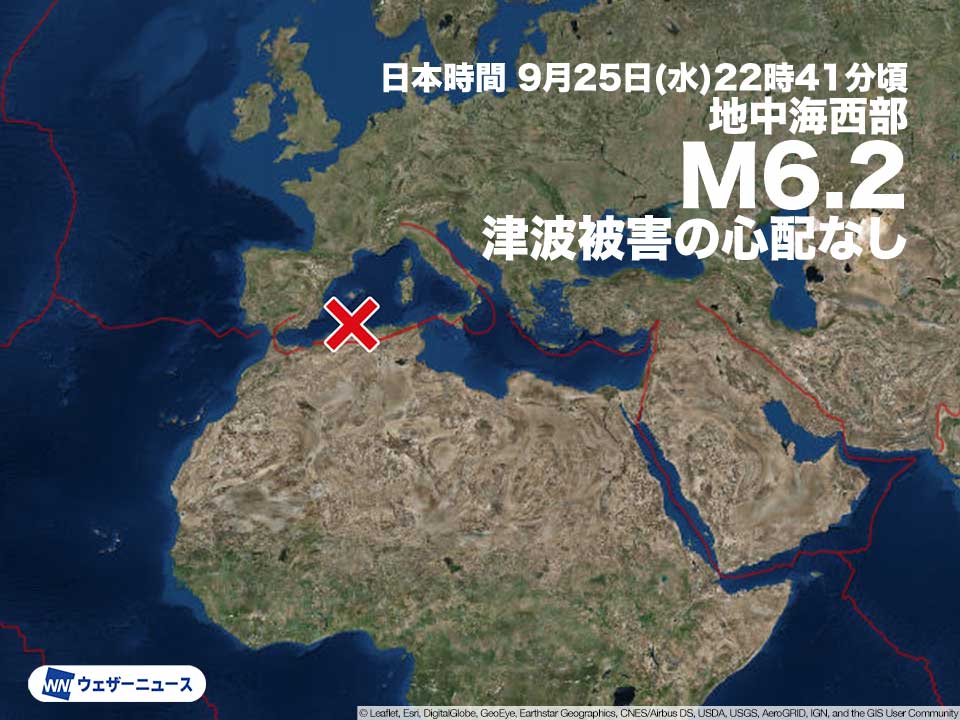 地中海西部でM6.2の地震…