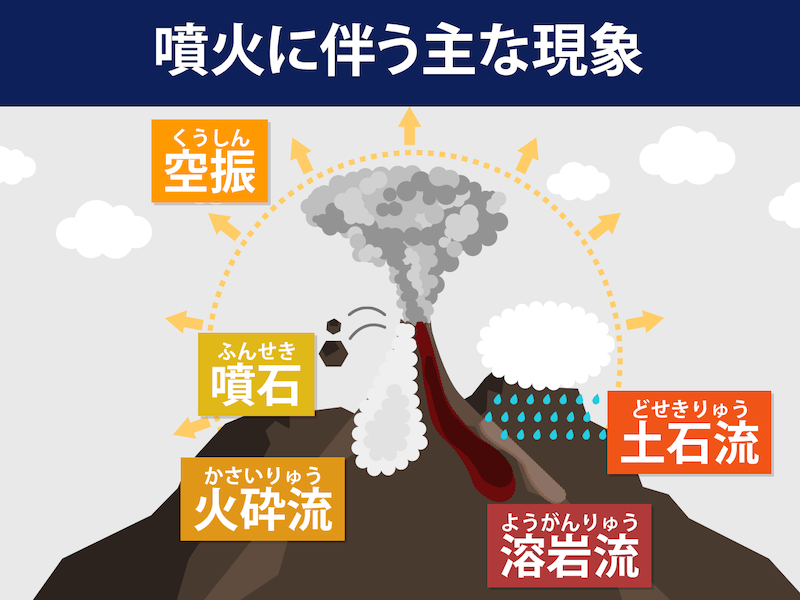 火山の噴火というと溶岩をイメージする人が多いかもしれませんが、危険な現象は多岐にわたります。