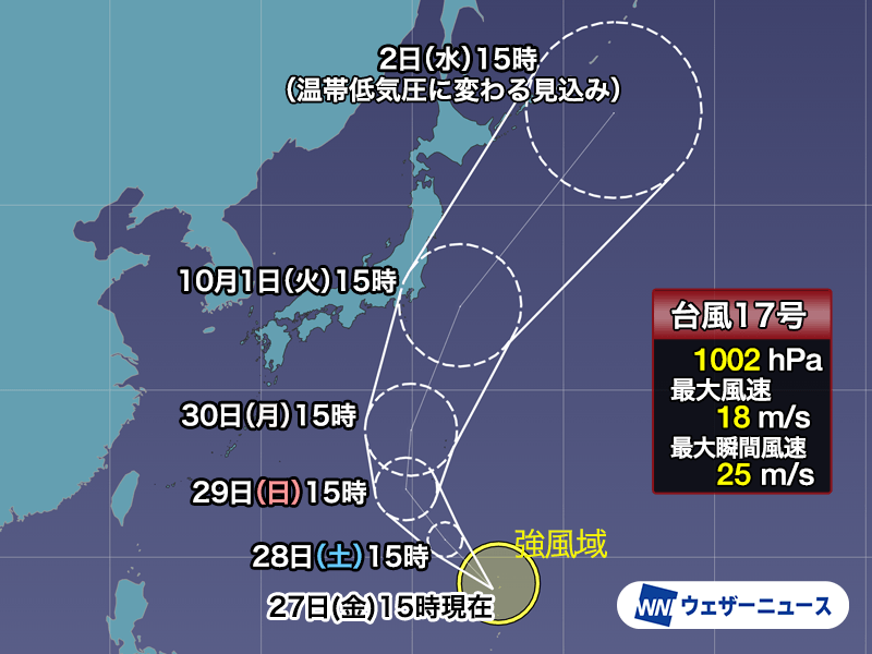 ▼台風17号 9月27日(金)15時